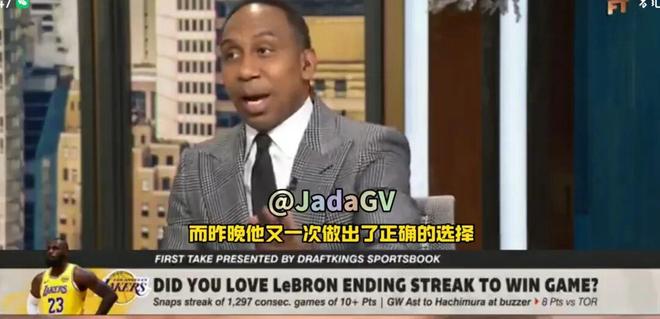 与老詹不合的史蒂芬A史密斯突然开始夸老詹了,在摒弃数据的情况下,老詹总是在关键时刻可以做出正确的决定,湖人能西决。